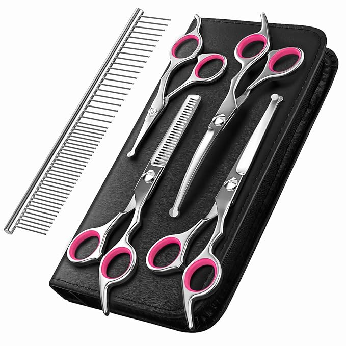 Pawaboo Dog Grooming Scissors Kit 5 Pack, Safety Round Tip Stainless Steel Titanium Coated Pet Grooming Trimmer Set